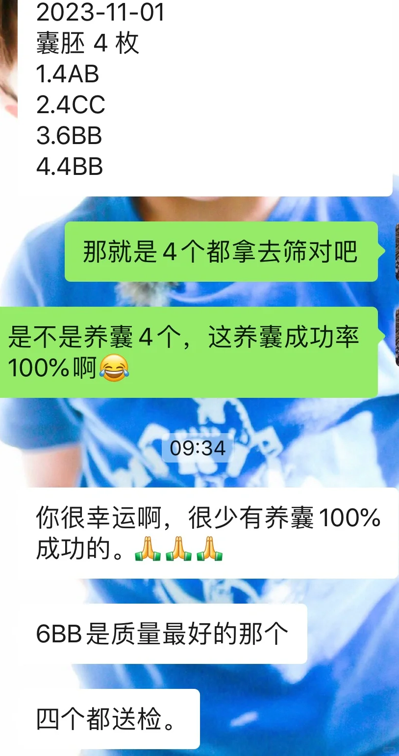 在北京,我通过专业的代怀机构,成功实现了辅助生殖的愿望。在重庆妇幼,7取35,受精24,胚胎11,养囊12,囊胚质量还很好,4ab,4ba,4bb,4bb-,全送去筛查了,希望过筛多点。试管前检查需要拍胸片吗?一次取卵12个,9受精,养囊9,3个5AA,6个4AA,三代pgt筛查只过了4个。另外有姐妹分享的3个5BB,6个5CB,1个5CA,2个5CC,2个4BB,1个6BB。送检挑那些?选8个?我们都希望能接优质囊胚。另外,也有朋友对试管过程持怀疑态度,认为“又来骗人做试管”,但我们更相信科学和希望,期待精卵全部养成优质囊胚,筛查全部通过!保佑我!!!接你过筛好运,我取卵就取了2个,还都出囊了。当时万念俱灰。姐妹,送去养囊的胚胎都是什么等级的啊?我也在等养囊结果。在这许个愿,接养囊全部成功!我同样期待精卵全部养成优质囊胚,筛查全部通过!想知道你们养成率这么高,都做了什么努力?我们也在寻找靠谱的代怀机构,希望也能获得包成功的好消息。